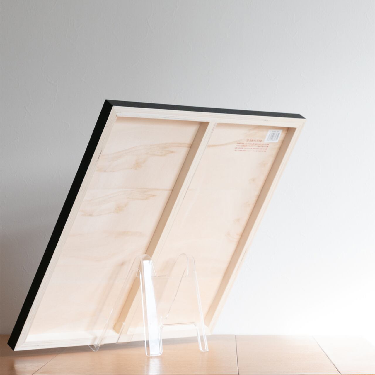 H455mm×W455mm×D20mm デスクなどに立て掛けても飾っていただけます。